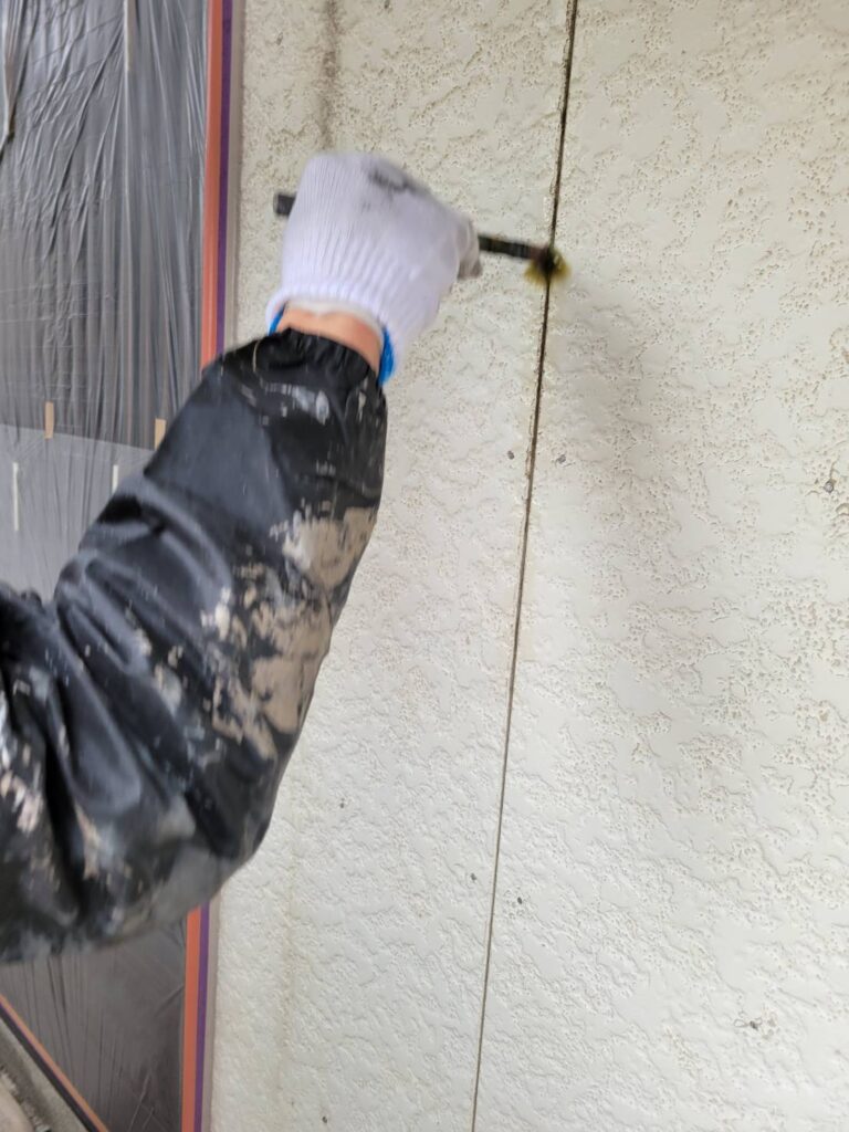 溝の奥やローラーでは入りきらない部分を先行して処理することで塗り残しを防ぎ、下地全体にしっかりとシーラーを行き渡らせます!