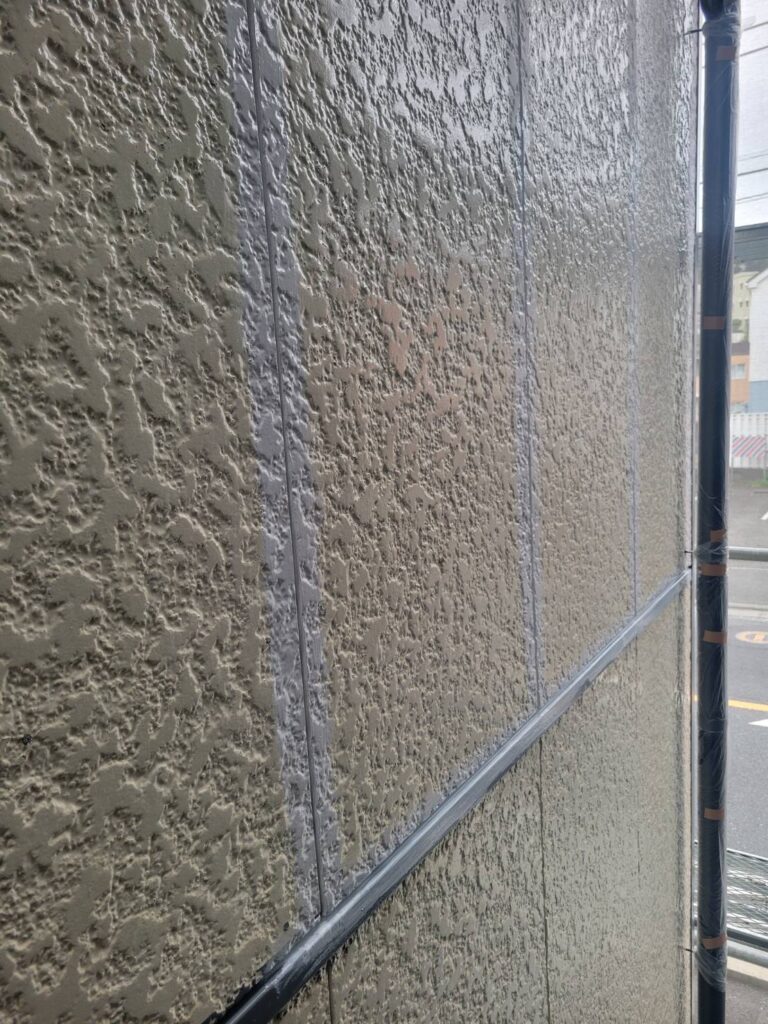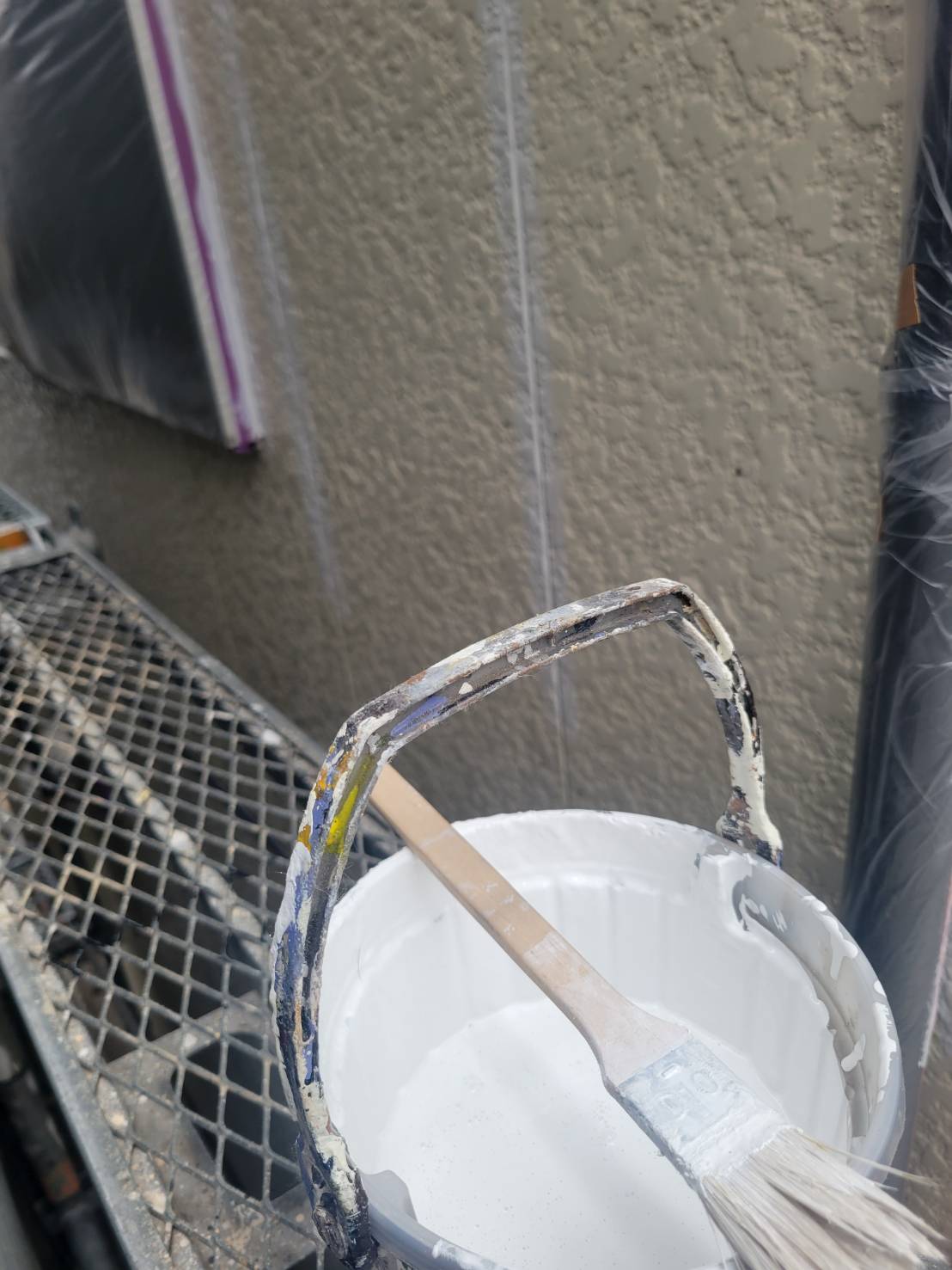 今回使用している中塗り塗料は下塗りと上塗りの中間的な役割を持つ塗料で、塗膜の厚みを確保しながら仕上がりの質を高めていく重要な工程になります!