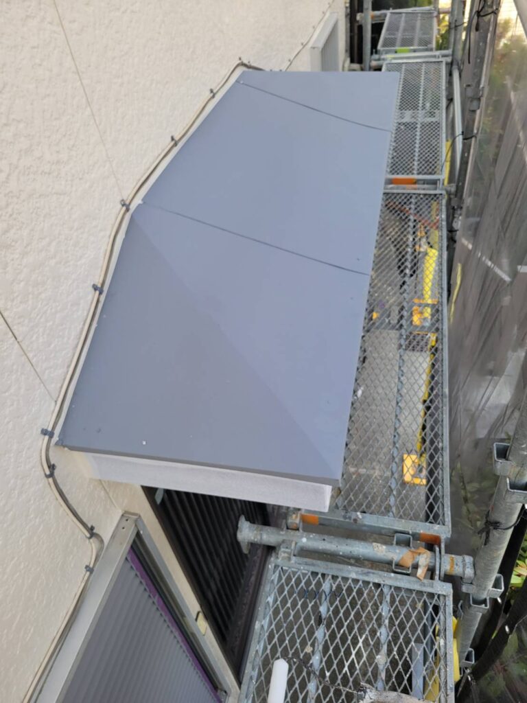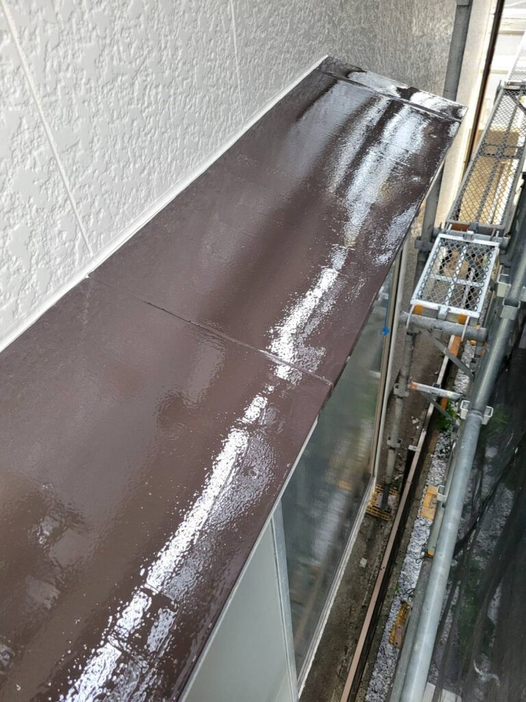 富岡東・国道16号沿いの現場で、霧よけ(窓上の小さな屋根部分)の塗装工事を行いました!