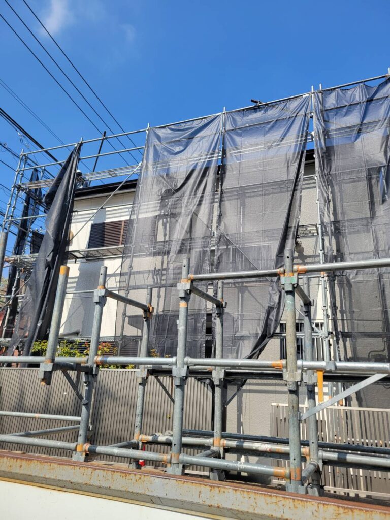 外壁塗装の工程がすべて完了し、最後に足場の解体作業を行いました!