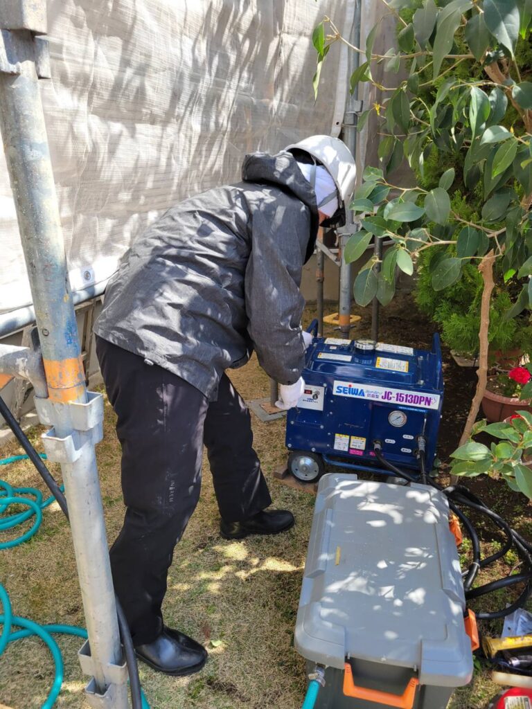 塗料にしっかりと効果を発揮させるために、苔や埃など洗浄機で一気に吹き飛ばして洗い流します!