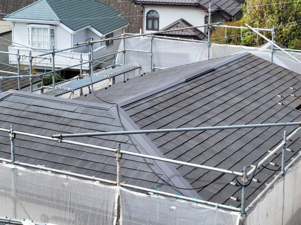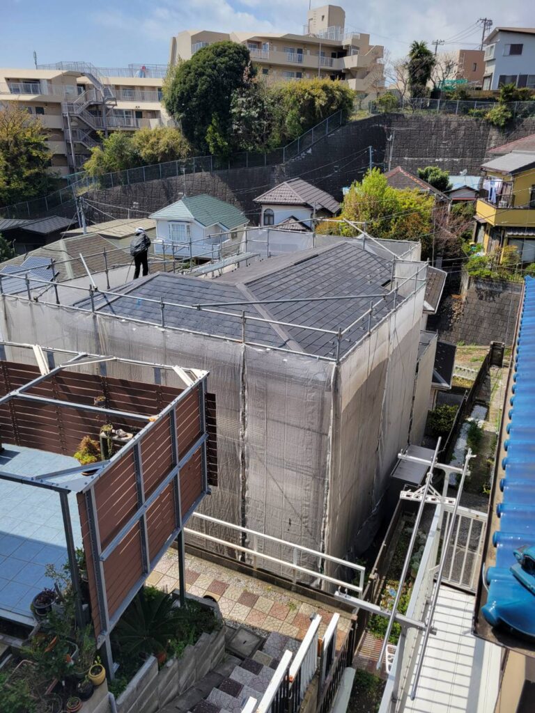 今回は高圧洗浄で屋根や外壁の汚れを落とす工程になります。