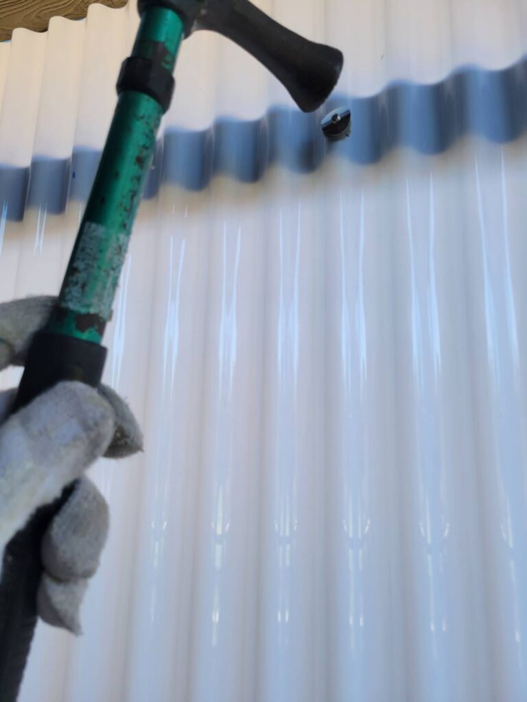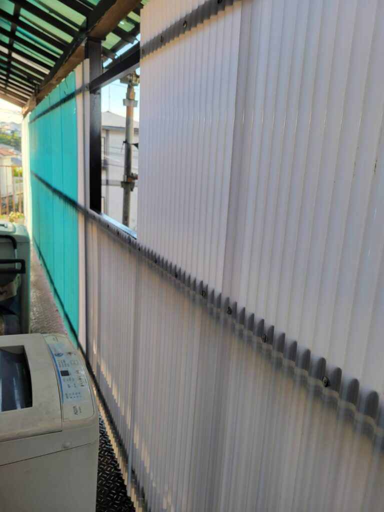 古い波板特有のくすみが無くなったことで、共用部としての清潔感も大きく向上しています。