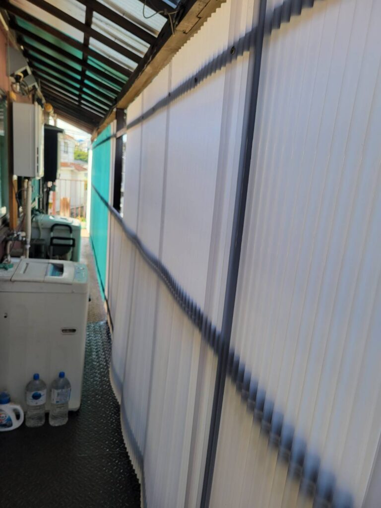 新しい波板に張り替えたことで、通路全体が明るくなり見た目の印象もすっきりしました!