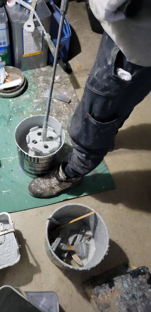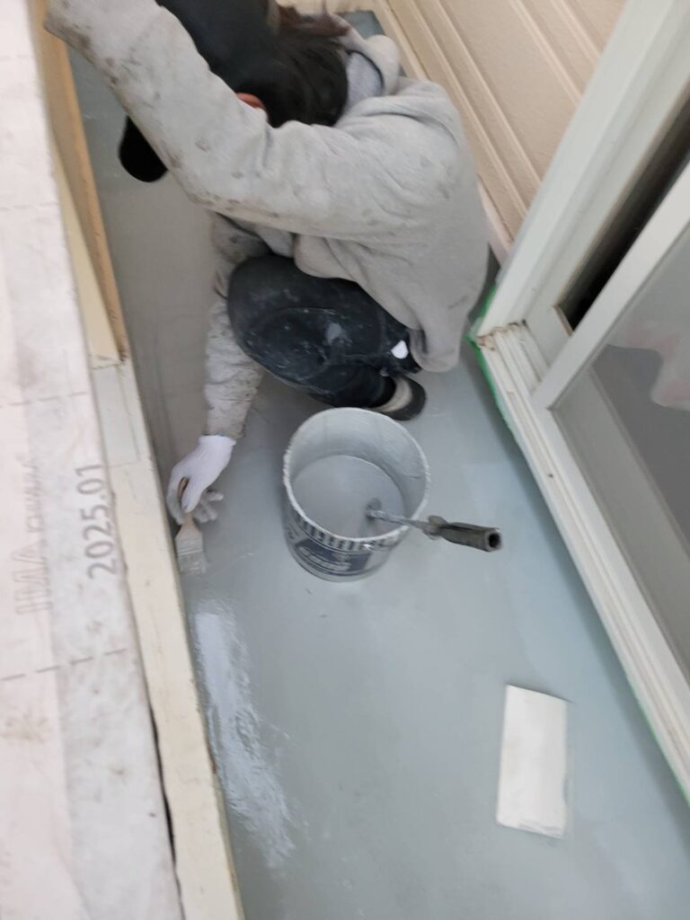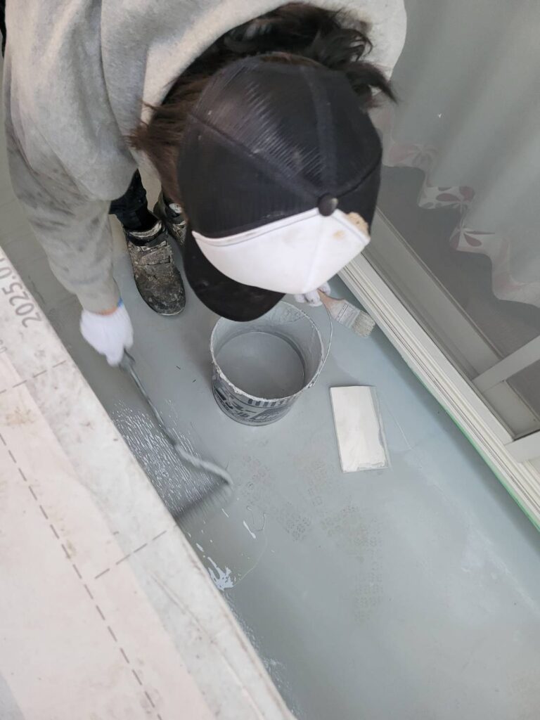 ウレタン防水は防水塗料を塗り重ねて防水の層を作っていくので2度防水塗料を塗り重ねていきます!