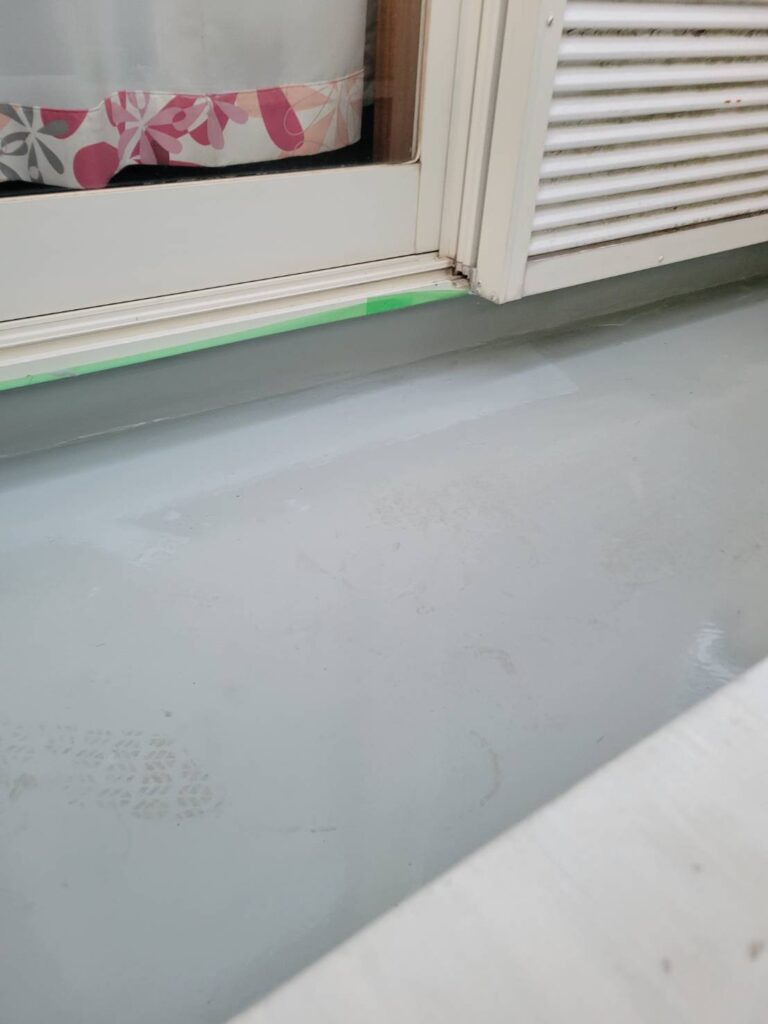 トップコートを塗り終わりモルタル防水の床が見違えるように綺麗になりましたね!