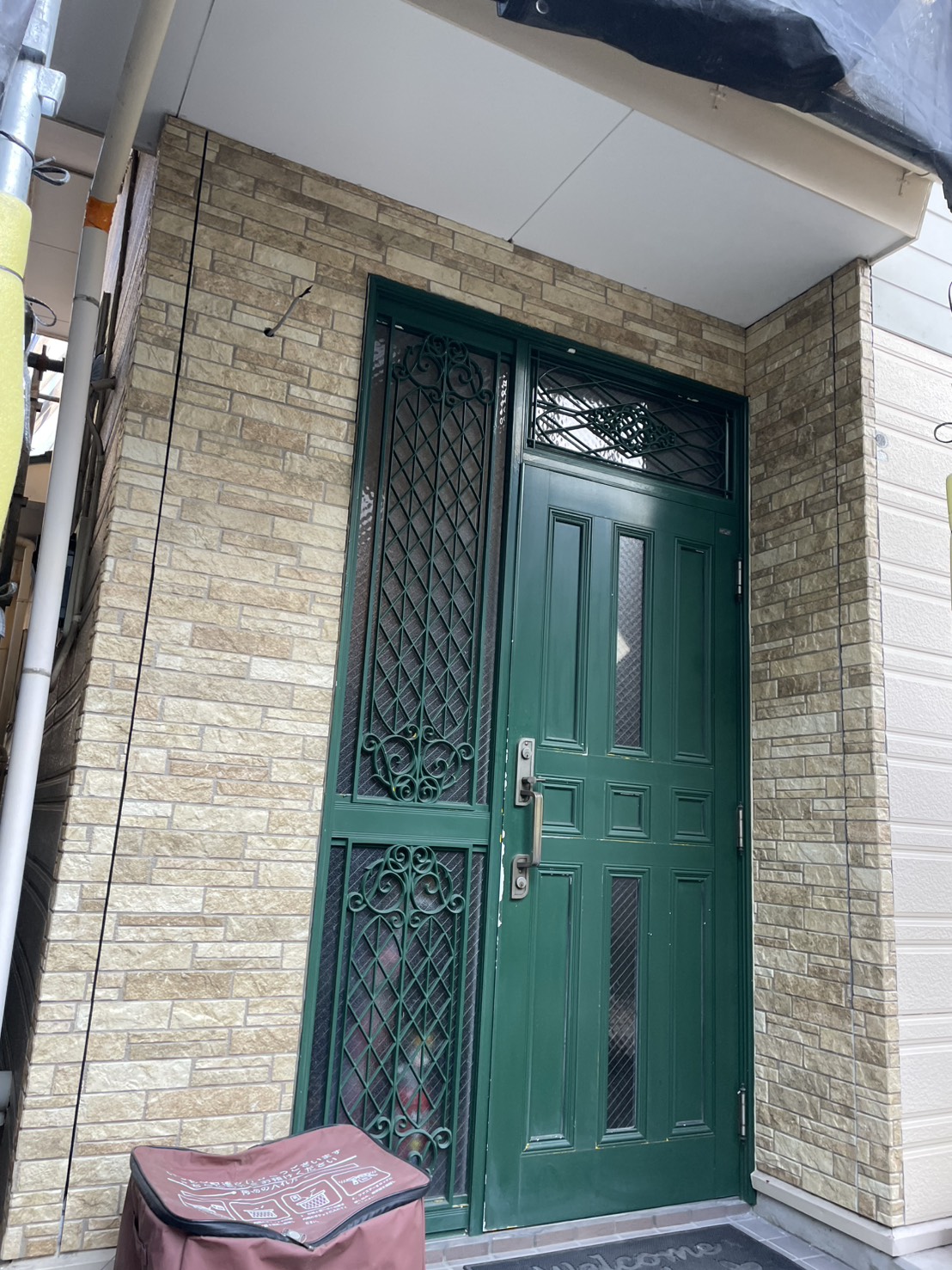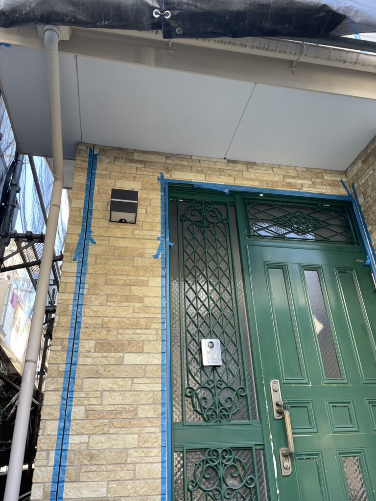 今回のブログは玄関前の軒天井の張り替え工事と防水班によるベランダのウレタン防水の施工の様子になります!