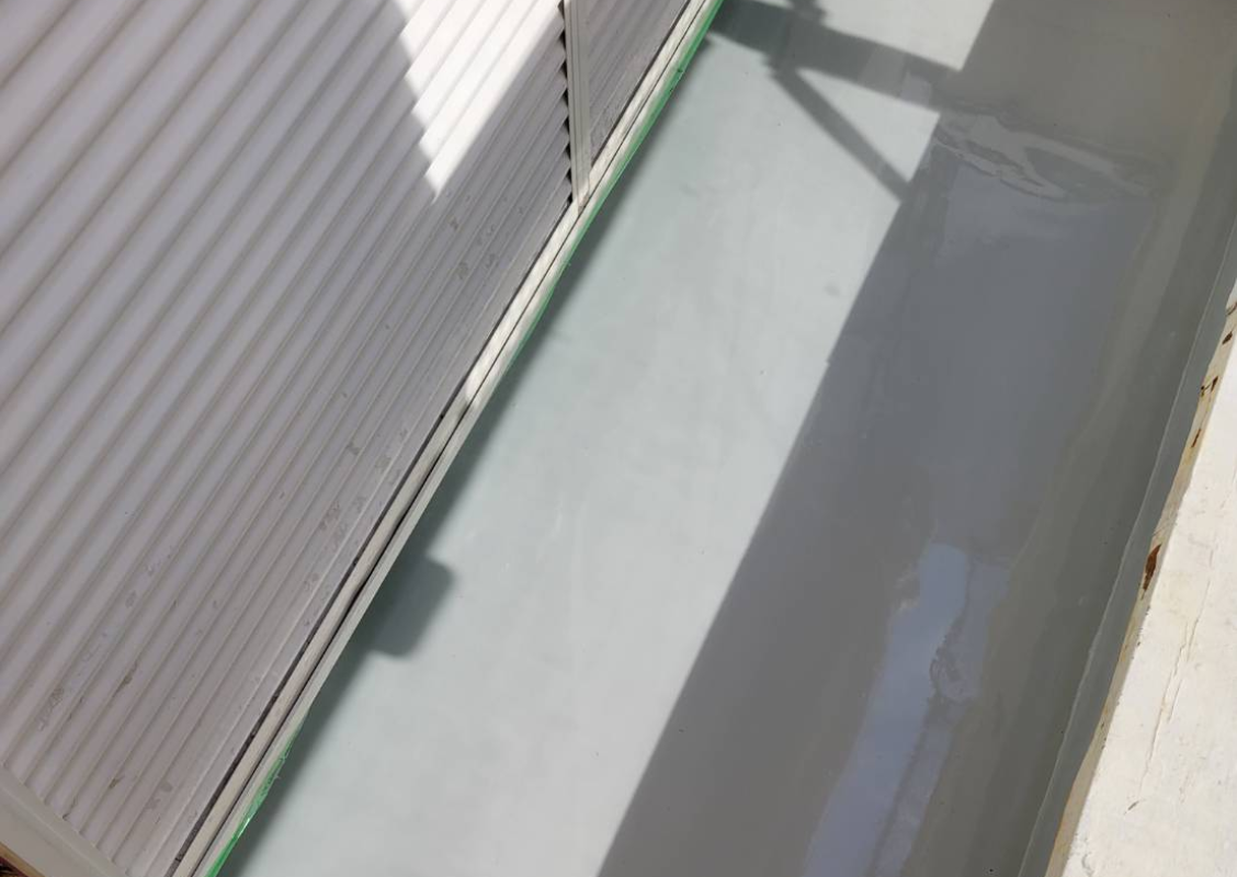 そして、最後の仕上げ塗りです。防水工事におけるトップコートの役割としては、ウレタン二層目で作った防水層の”保護”をするという役割です。 そのため隅々まで塗る必要があります。