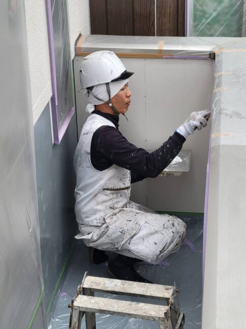 現場親方ブログヘラで均等に塗ります こんにちは!塗替えかがやき代表の小川です! だいぶ気候も落ち着いてきましたね。朝夕に少し肌寒さはありますが過ごしやすくなりました! 今回の施工は新しく打ち付けたベランダの内側のパネルのジョイント部に...