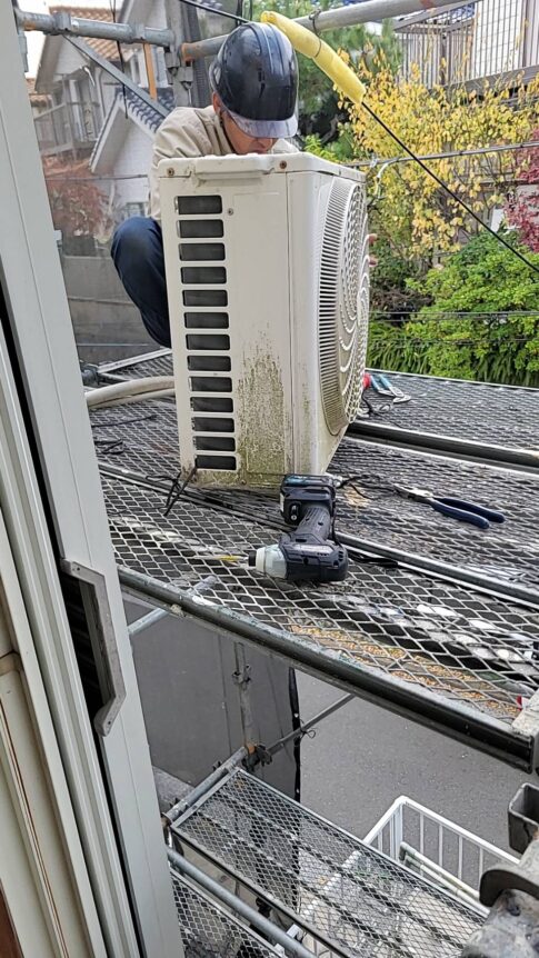 現場親方ブログ室外機の取り外し こんにちは!丁寧な施工を心掛けている塗り替えかがやき代表の小川です!富岡東・住宅街の現場で進めていた外壁塗装工事もついに最終段階へ入りました! 外壁の塗り替えが完了し、ベランダの新規取り付けに向けて足場...