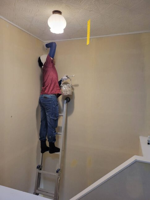 現場親方ブログ高い場所も塗ります こんにちは!外壁塗装に情熱を燃やす塗替えかがやき代表の小川です!今日も横須賀市の現場にてお手伝いに来ています! 現在、2階の内装工事を行っており、リビングの施工が終わったので今日から廊下の施工に移りま...