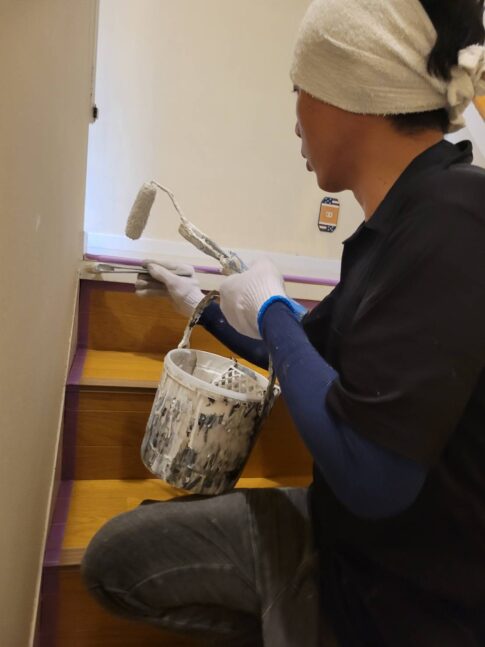 現場親方ブログ階段横の笠木や手すりの土台を塗ります こんにちは!外壁塗装に情熱を燃やす塗替えかがやき代表の小川です!今回は、前回に引き続き横須賀市の現場のお手伝いです! リビングの塗装が終わり廊下の通路や階段の笠木の塗装をしたので、階...