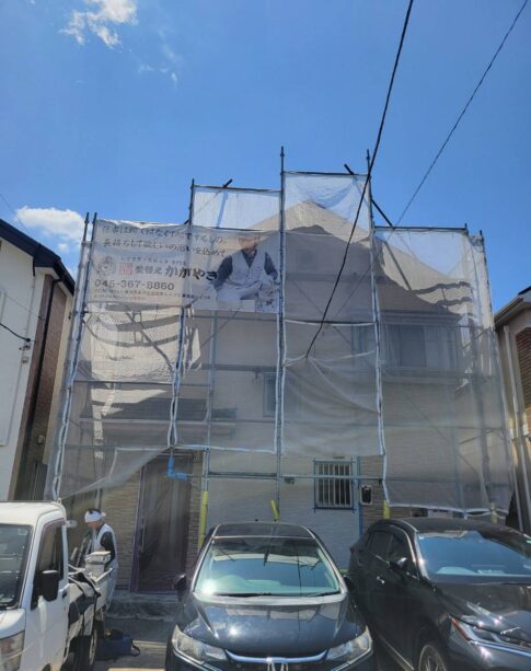 現場親方ブログあいにくの雨ですが こんにちは!塗替えかがやき代表の小川です! 本日から横浜市柳町での施工となります。足場の設置が終わったのでメッシュシートを張っていきます。天候はあいにくの雨ですので安全第一で進めていきます。 こちらが...