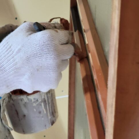 現場親方ブログ色の微調整が大事です こんにちは!塗替えかがやきの代表の小川です! 内装工事の依頼を受けて横須賀市の平作の現場に来ています。今回は木枠を塗るための準備段階になります。 こちらがこれから塗る木枠になります。少し確認しにくい...