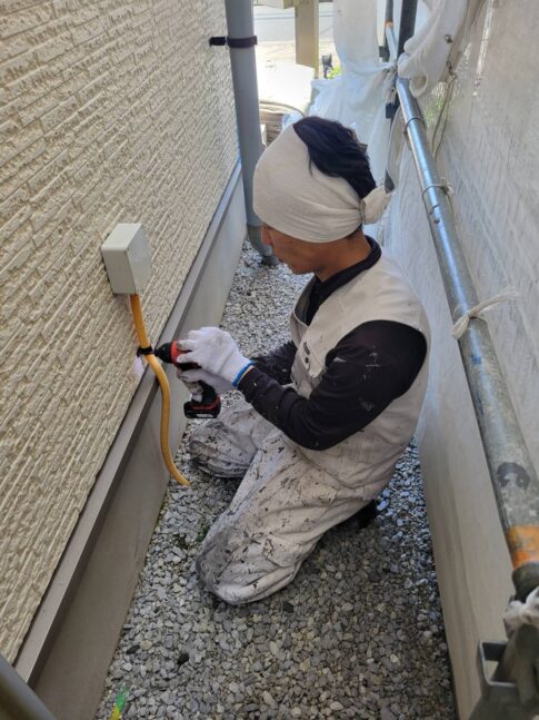 現場親方ブログ外せる物は何でも こんにちは!塗替えかがやき代表の小川です! 前回で屋根の補修作業が終わったので次は塗装しやすくするように外壁についているものを取り外す作業になります。まずはエアコンカバーからです。 この作業も毎回のお馴...