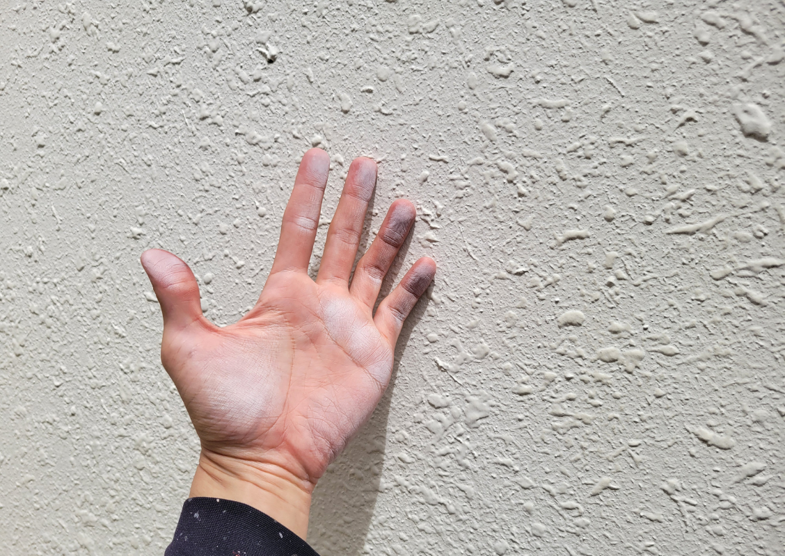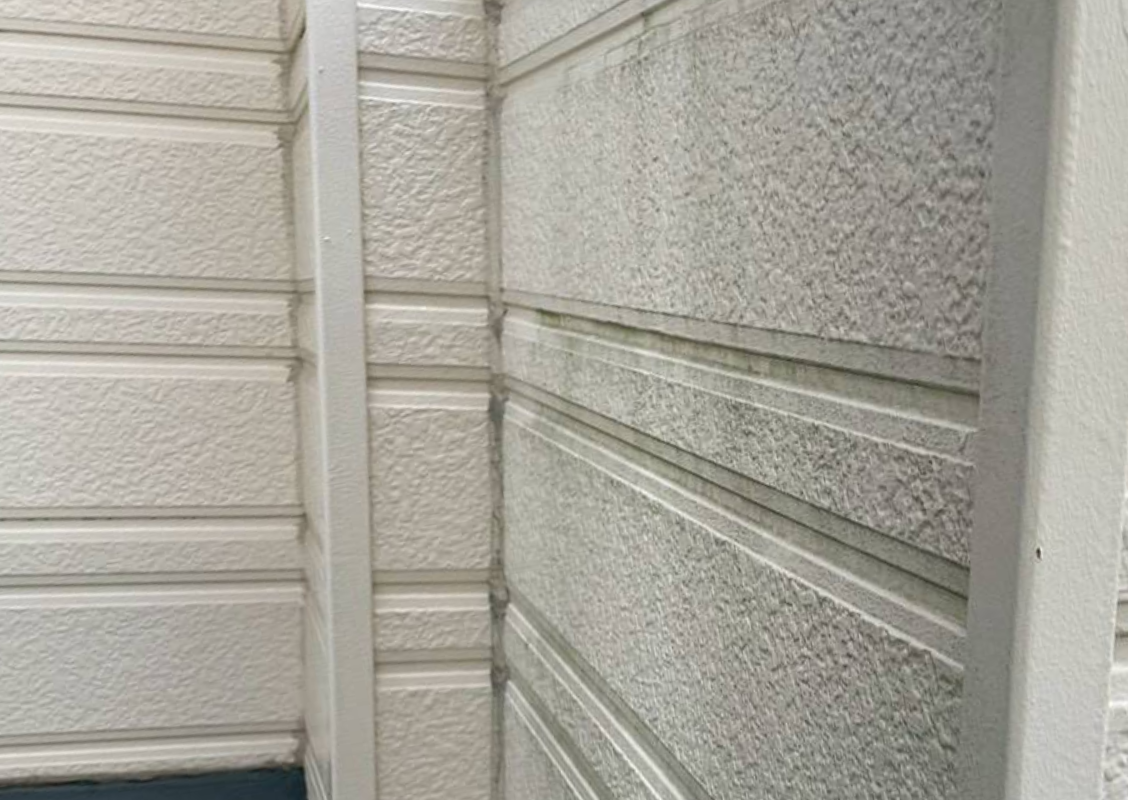 壁を触ると白い粉が付着する状態は、塗装の劣化を示しています。